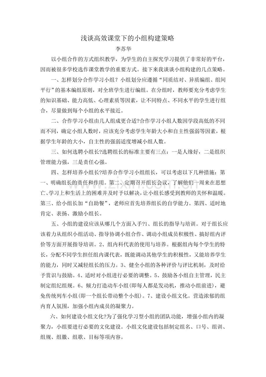 以小组合作的方式组织教学,为学生的自主探究学习提供了非常好的平台,因而被很多学校选作课堂教学的重要方式。接下来我谈谈小组构建的几点策略。