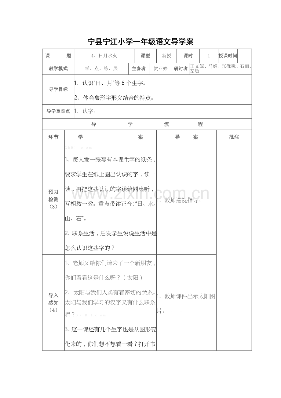 宁县宁江小学一年级语文导学案