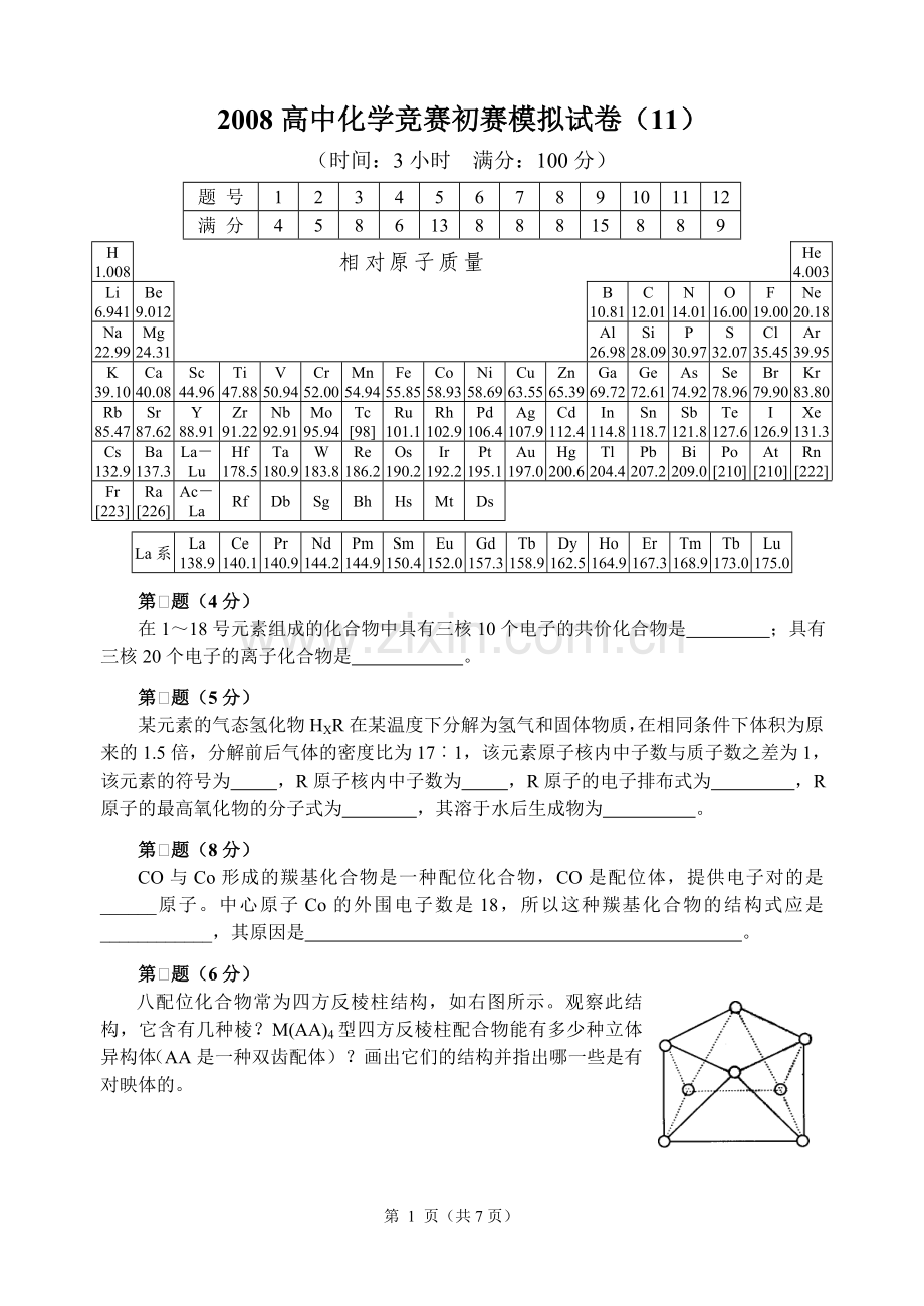 2008高中化学竞赛初赛模拟试卷(11)