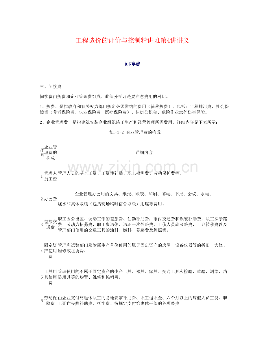 间接费由规费和企业管理费组成。此部分学习是要注意费用的对比。