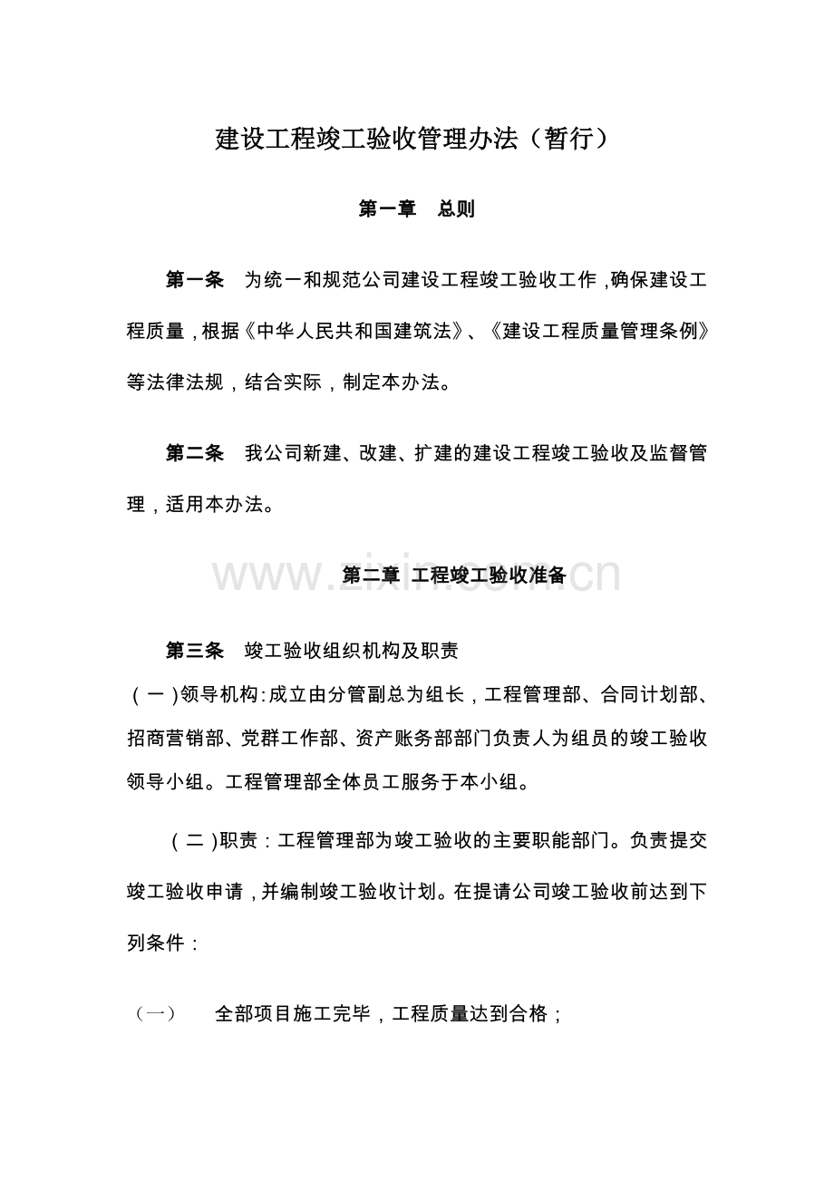 第一条 为统一和规范公司建设工程竣工验收工作,确保建设工程质量,根据《中华人民共和国建筑法》、《建设工程质量管理条例》等法律法规,结合实际,制定本办法。