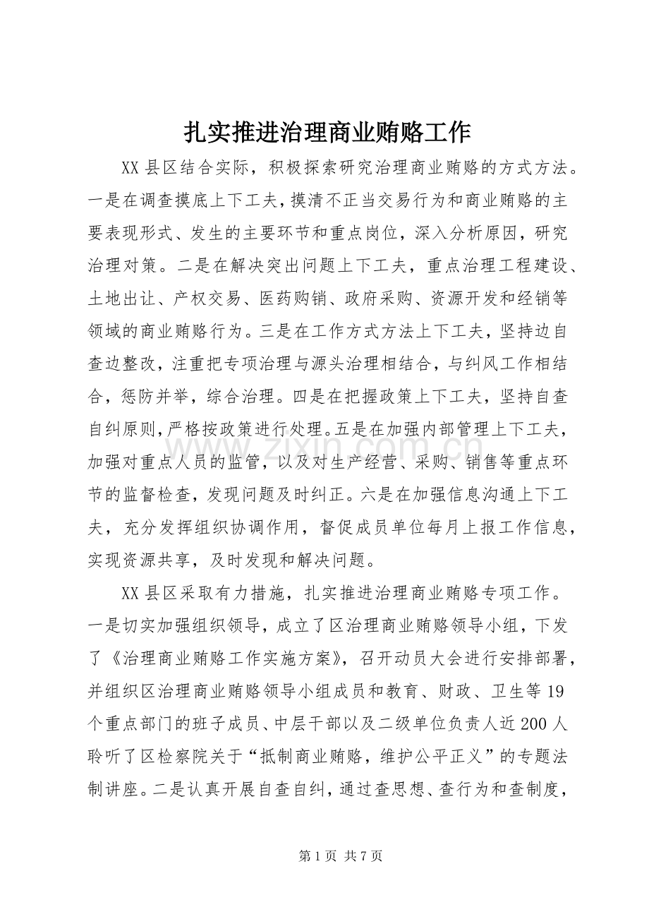 扎实推进治理商业贿赂工作