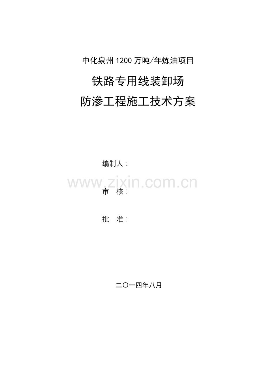 铁路专用线石化站液体装卸场属于《中化泉州1200万吨/年炼油项目环境影响报告书》中的重点污染防治区,要求采用双层防渗,即从上至下依次采用抗渗钢筋混凝土整体基础、砂石垫层、长丝无纺土工布、2mm厚HDPE土工膜、长丝无纺土工布、原土夯实的结构进行防渗(见图1.1)。