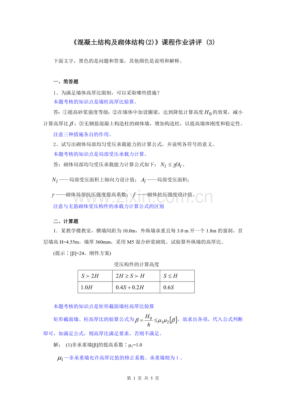 《混凝土结构及砌体结构(2)》课程作业讲评 (3)