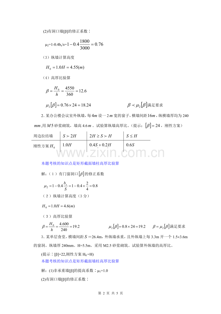 (2)纵墙计算高度(3分)