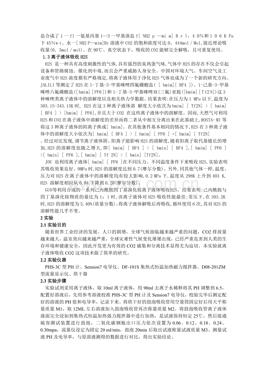 1.3离子液体吸收H2S