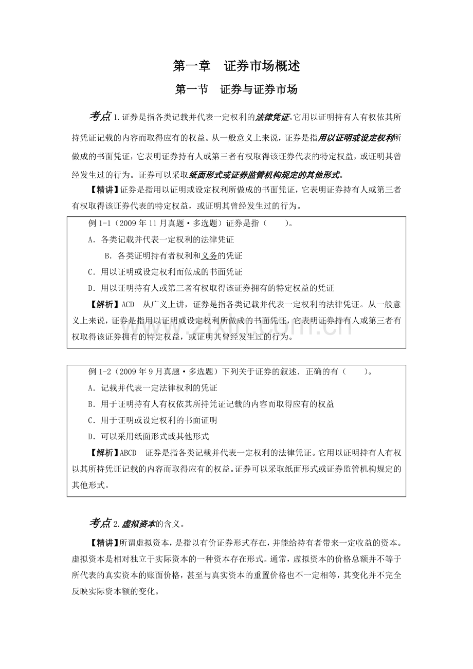 例1-2(2009年9月真题·多选题)下列关于证券的叙述.正确的有( )。