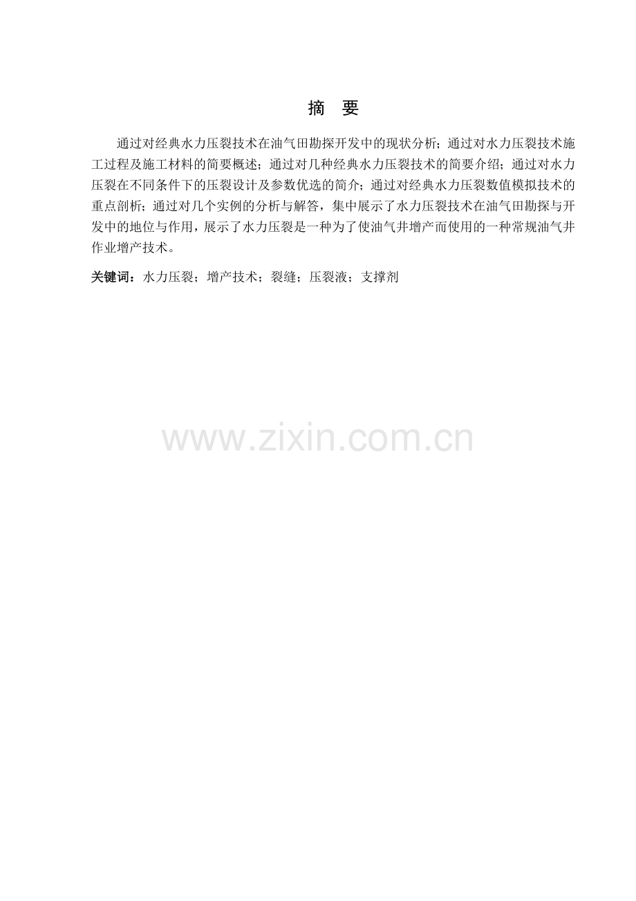 通过对经典水力压裂技术在油气田勘探开发中的现状分析;通过对水力压裂技术施工过程及施工材料的简要概述;通过对几种经典水力压裂技术的简要介绍;通过对水力压裂在不同条件下的压裂设计及参数优选的简介;通过对经典水力压裂数值模拟技术的重点剖析;通过对几个实例的分析与解答,集中展示了水力压裂技术在油气田勘探与开发中的地位与作用,展示了水力压裂是一种为了使油气井增产而使用的一种常规油气井作业增产技术。