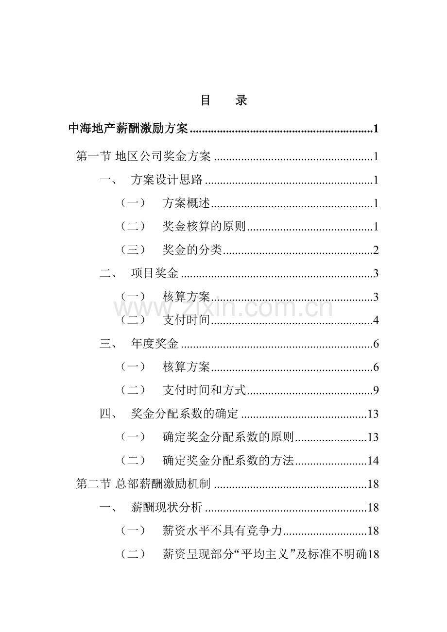 中海地产薪酬激励方案 1