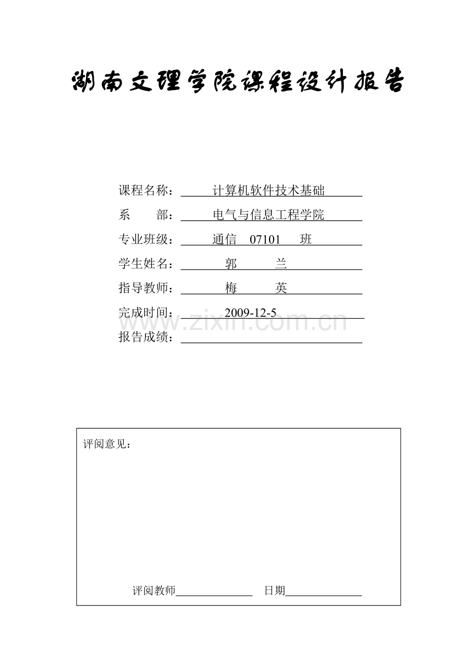 (5) 要求以菜单选择的方式完成上述4项功能,用户界面美观,便于操作,软件运行稳定、准确。