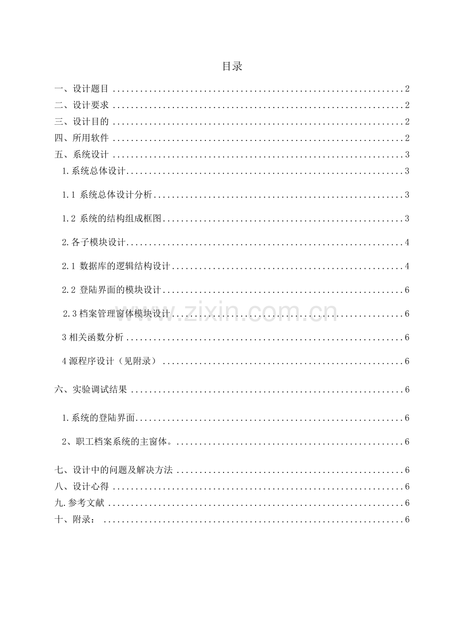 设计编写一个职工档案管理软件。该软件与实际应用还有很大的距离,但它涵盖了数据库设计的基本内容。根据实际工作的需要,一般用户要求一个档案管理软件应有以下几个基本功能:
