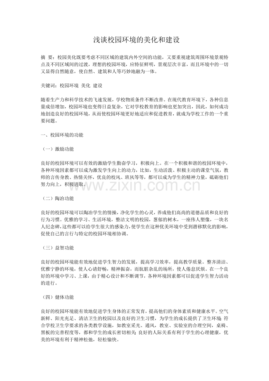 关键词:校园环境 美化 建设