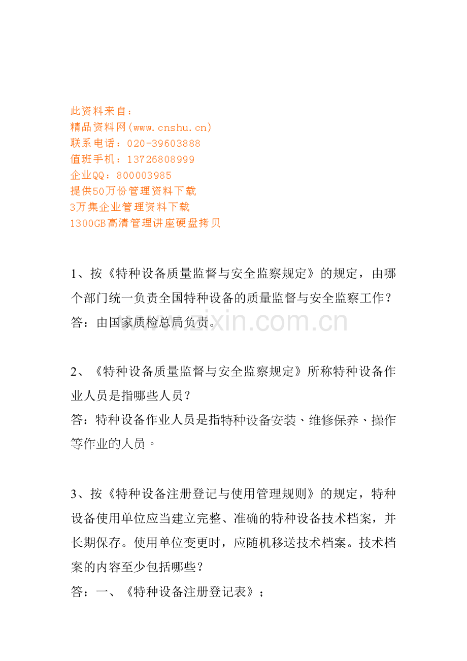 1、按《特种设备质量监督与安全监察规定》的规定,由哪个部门统一负责全国特种设备的质量监督与安全监察工作?