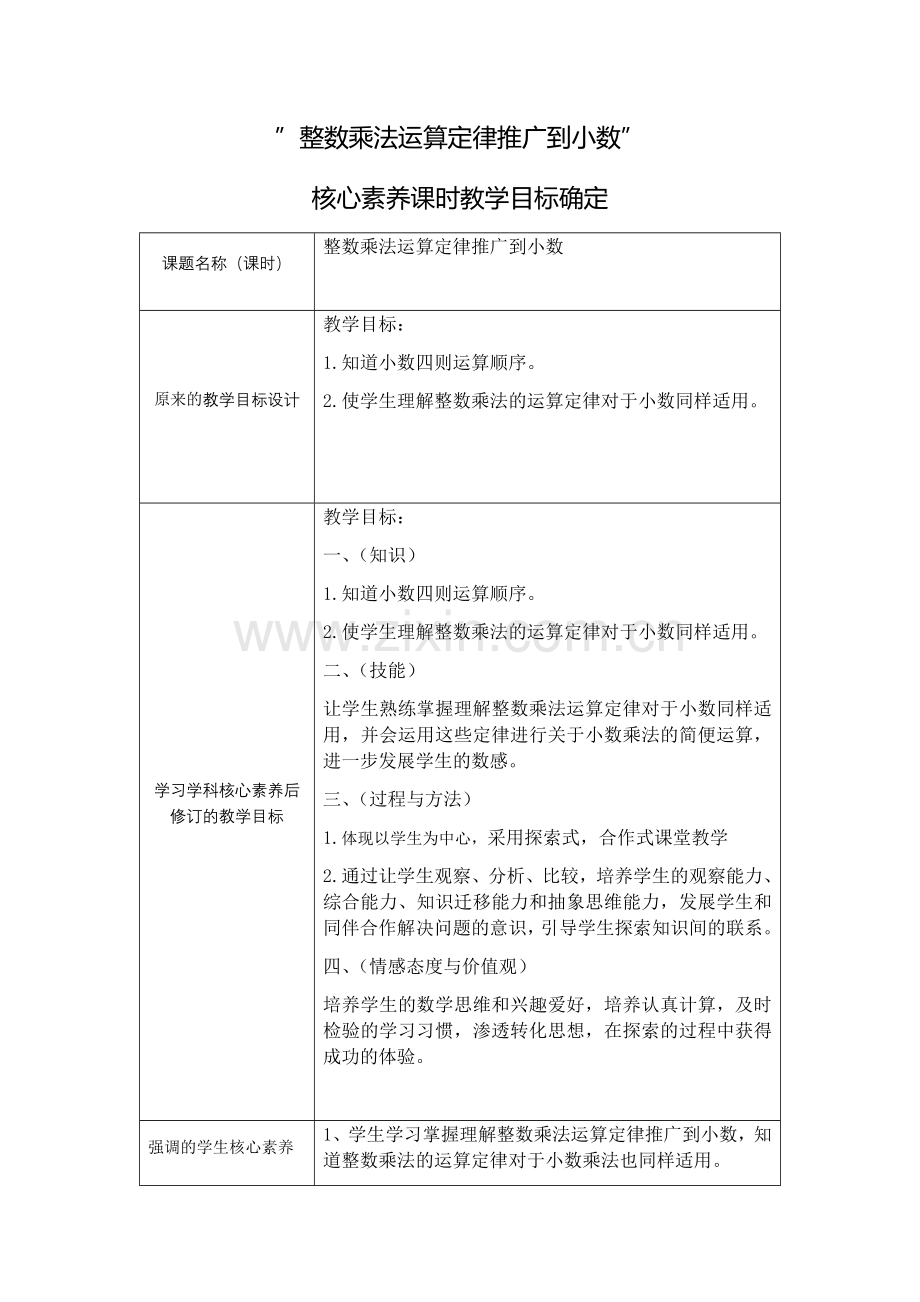 1、 学生学习掌握理解整数乘法运算定律推广到小数,知道整数乘法的运算定律对于小数乘法也同样适用。