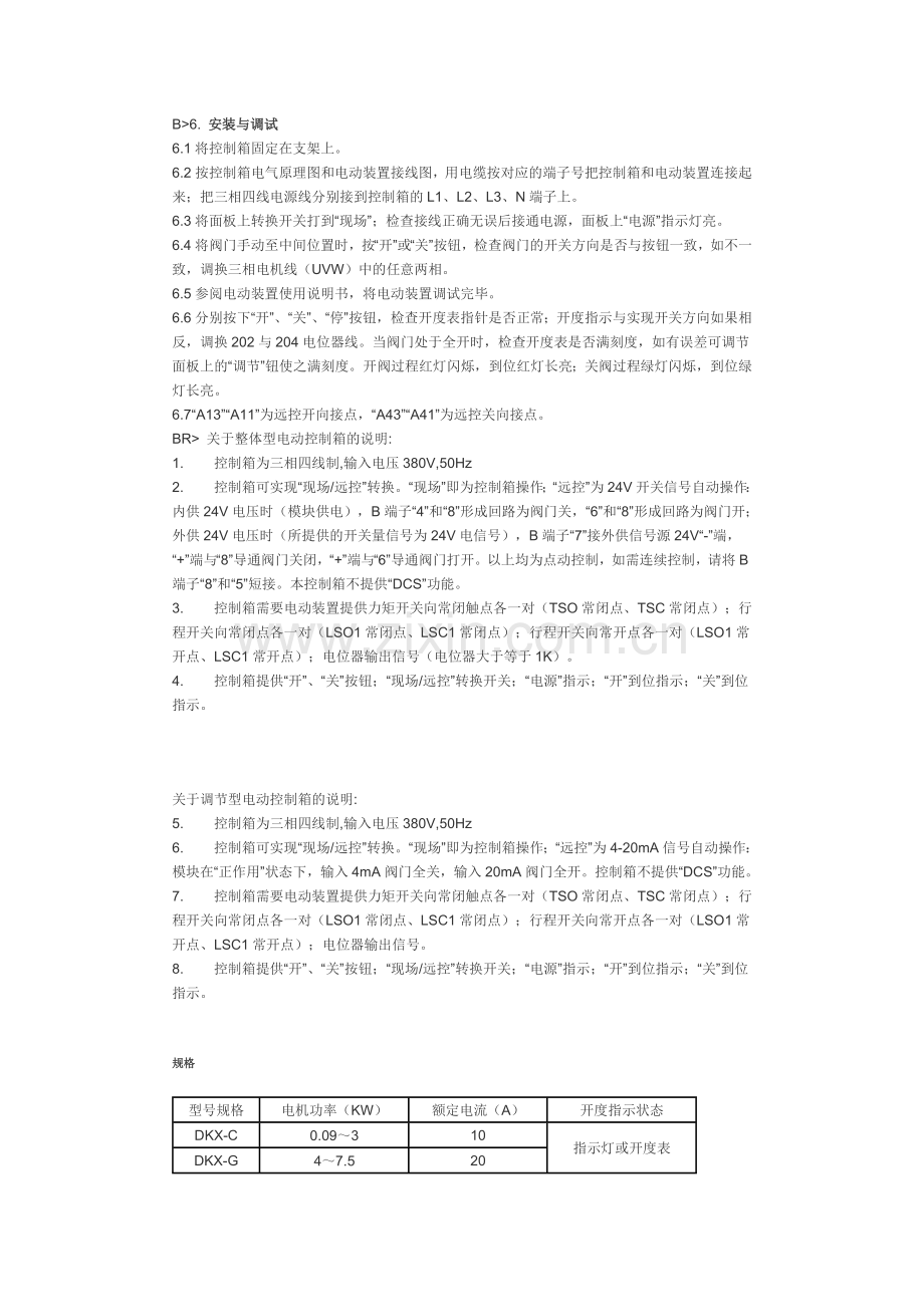 BR> 关于整体型电动控制箱的说明: