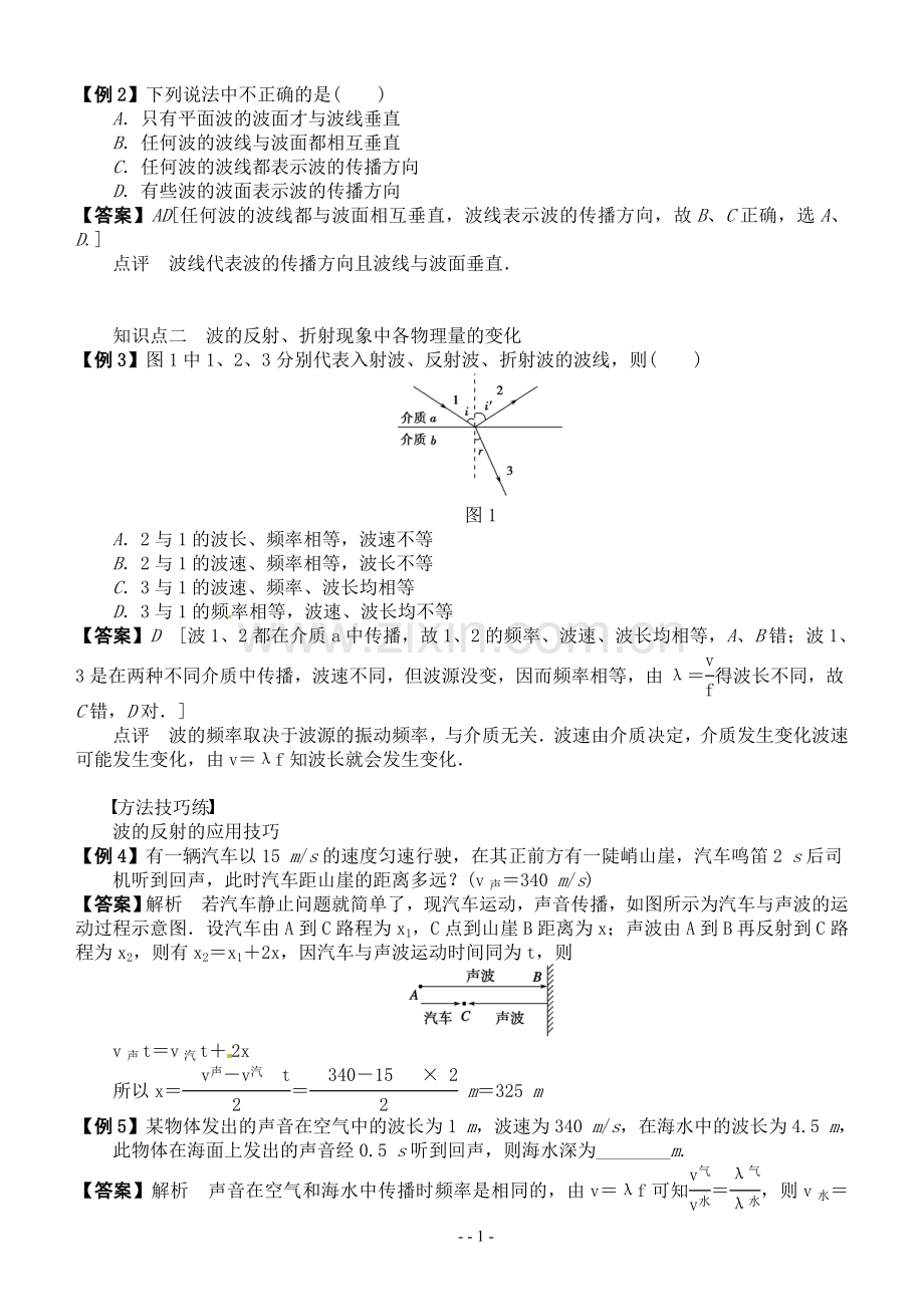 【例3】图1中1、2、3分别代表入射波、反射波、折射波的波线,则( )