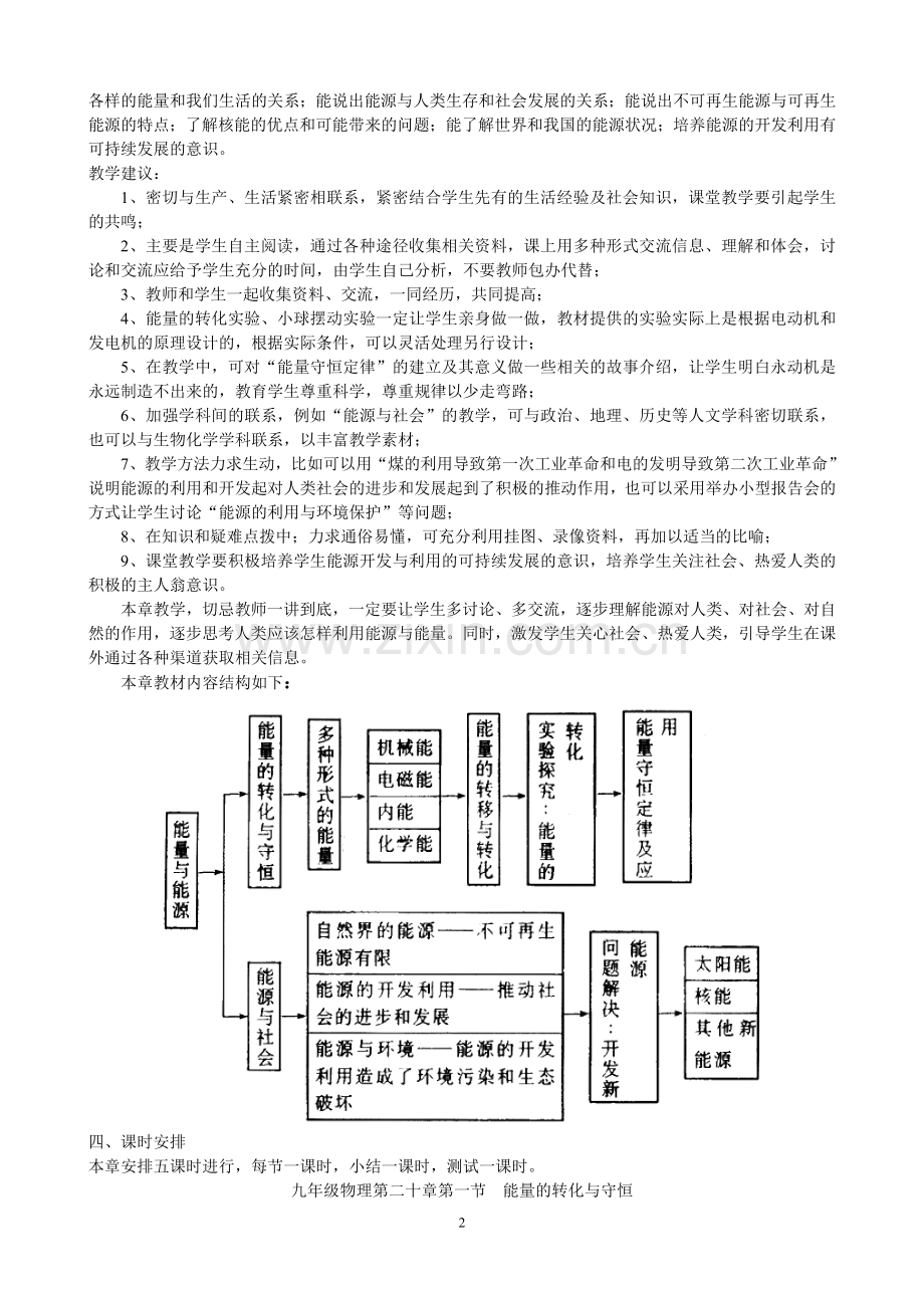 对本章内容目标的把握,首先是知识与技能目标:通过本章的学习,应对“能源的利用和发展关系着整个国民经济的发展,关系着整个人类的生产和生活。为了减少能源的大量消耗和能源利用工程中对环境日益严重的污染,使国民经济走可持续发展的道路,就必须合理用能和节能。节能已成为我国发展经济的一项战略方针”这一观点有所体会;能用准确、简洁的语言说出能量守恒定律;能举出日常生活中能量守恒的实例;知道能量可以从一个物体转移到另一个物体,不同形式的能量可以相互转化;能简单描述各种各样的能量和我们生活的关系;能说出能源与人类生存和社会发展的关系;能说出不可再生能源与可再生能源的特点;了解核能的优点和可能带来的问题;能了解世界和我国的能源状况;培养能源的开发利用有可持续发展的意识。