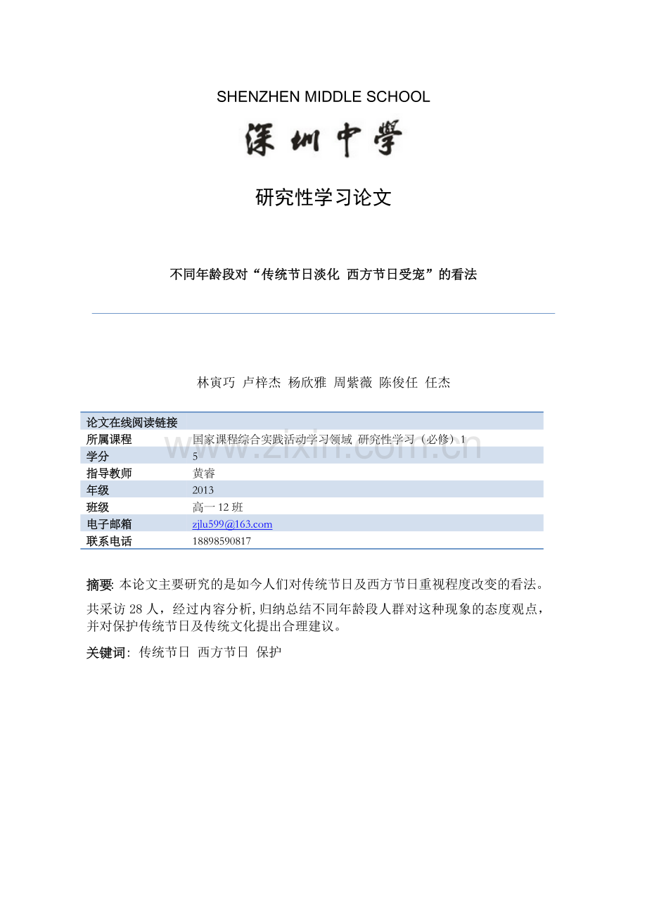 (1)根据平时生活中的发现和自身经历,就“传统节日淡化 西方节日受宠”这一社会现象提出自己的认识和对其原因的猜测,确定采访内容主要为“感受”“看法”“行动”几个方面;