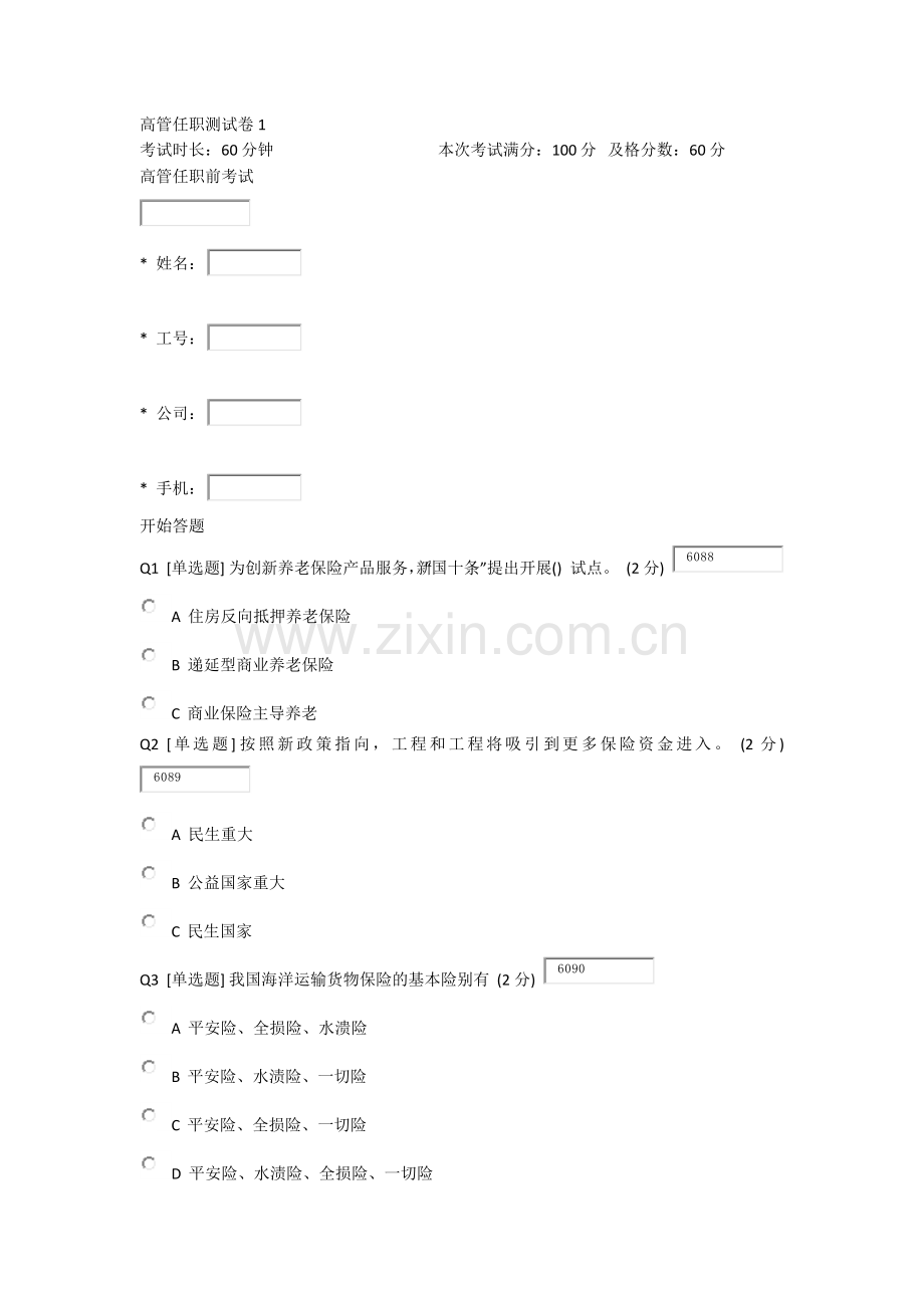 Q1 [单选题] 为创新养老保险产品服务,新“国十条”提出开展() 试点。 (2分)