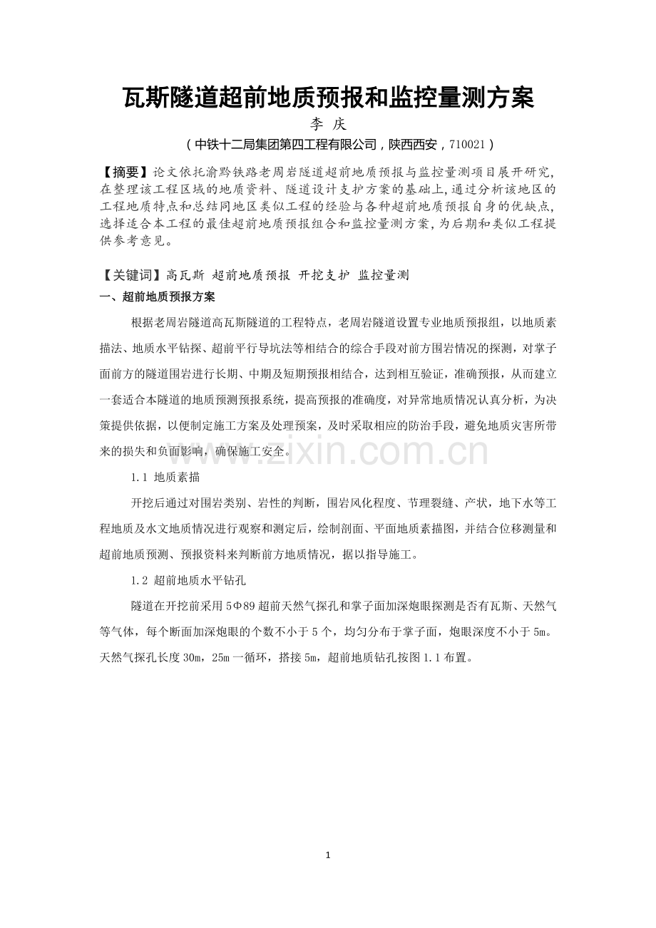 【关键词】高瓦斯 超前地质预报 开挖支护 监控量测