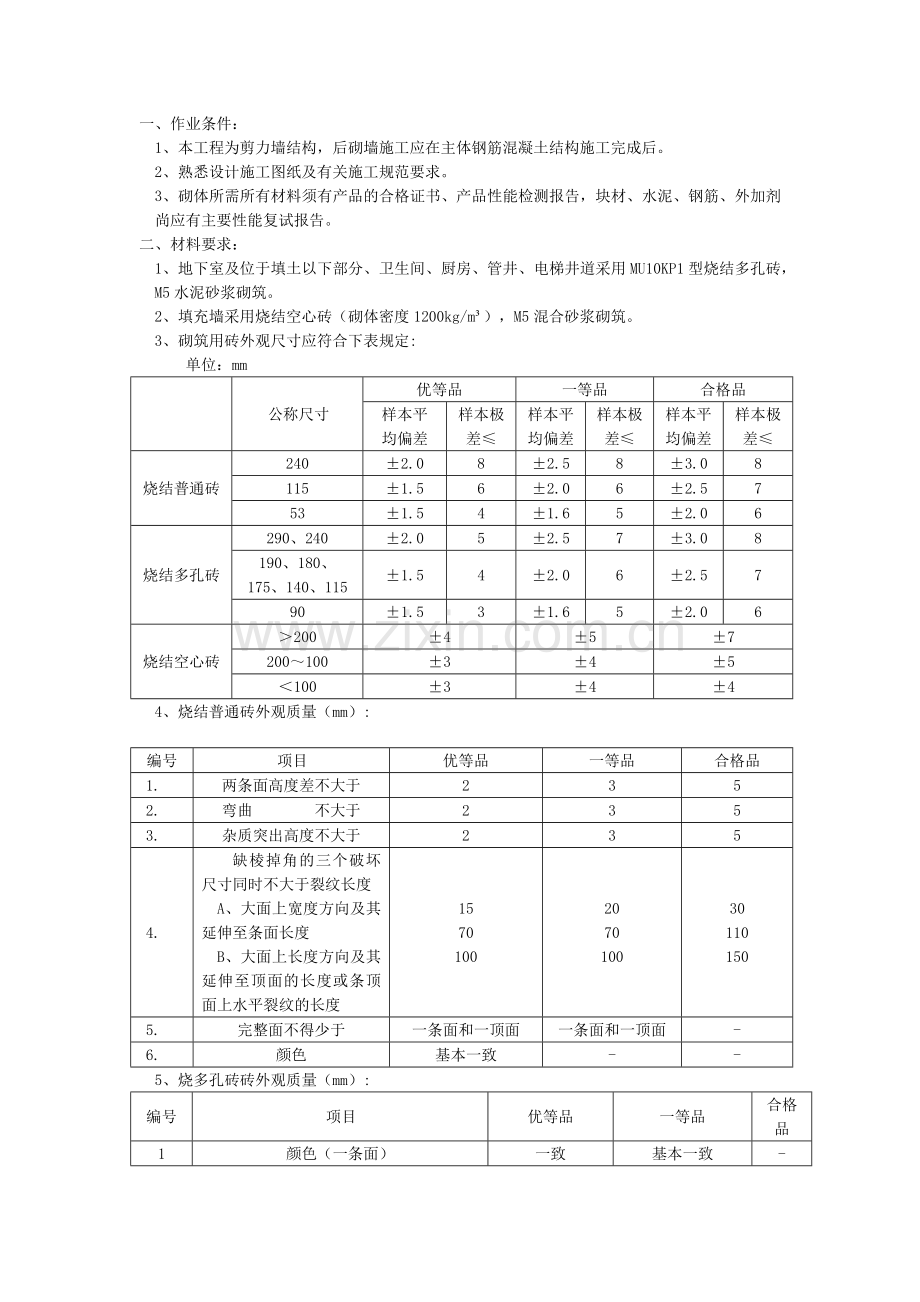 1、地下室及位于填土以下部分、卫生间、厨房、管井、电梯井道采用MU10KP1型烧结多孔砖,M5水泥砂浆砌筑。