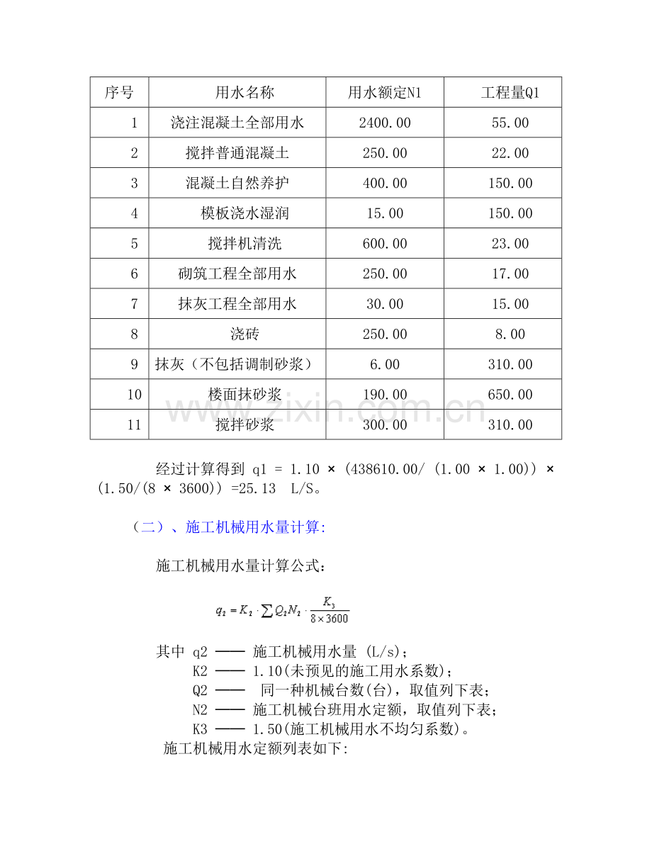K3 ── 1.50(施工机械用水不均匀系数)。
