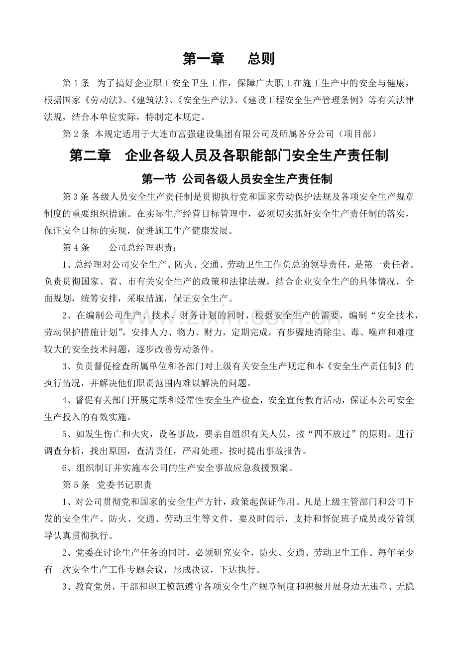 第2条 本规定适用于大连市富强建设集团有限公司及所属各分公司(项目部)