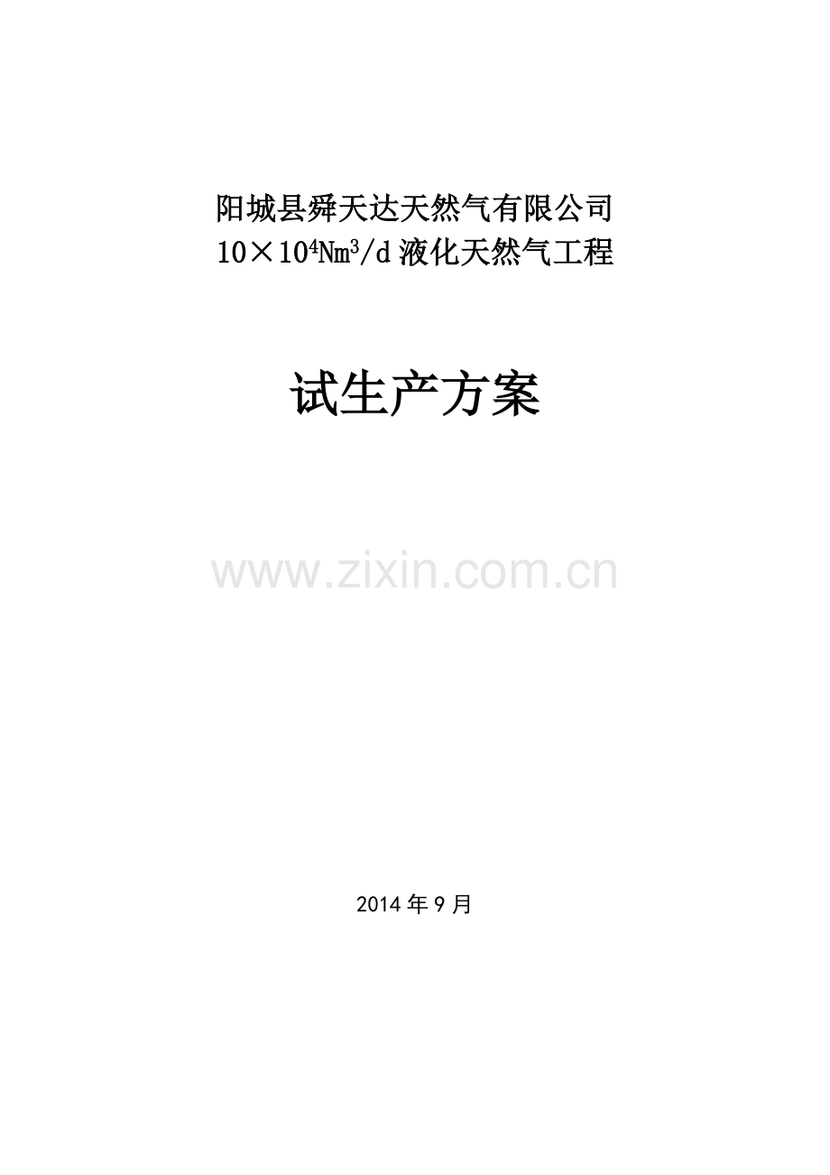 本方案适用于阳城县舜天达天然气有限公司10×104Nm3/d液化天然气工程试生产。