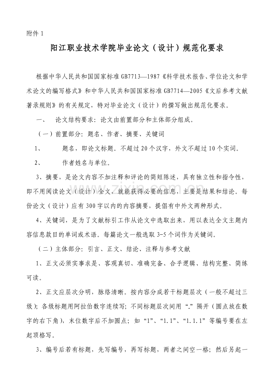 根据中华人民共和国国家标准GB7713—1987《科学技术报告、学位论文和学术论文的编写格式》和中华人民共和国国家标准GB7714—2005《文后参考文献著录规则》的有关规定,特对毕业论文(设计)的撰写做出规范化要求。