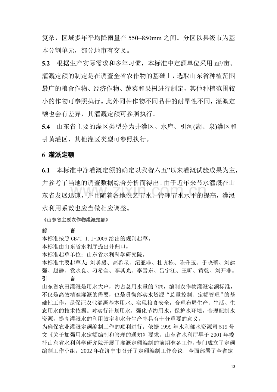 1.1 由于山东省农作物种植种类繁多,灌溉形式复杂,生育期和需水规律相近的其他作物,其灌溉定额可在总结灌水经验的基础上参照执行。