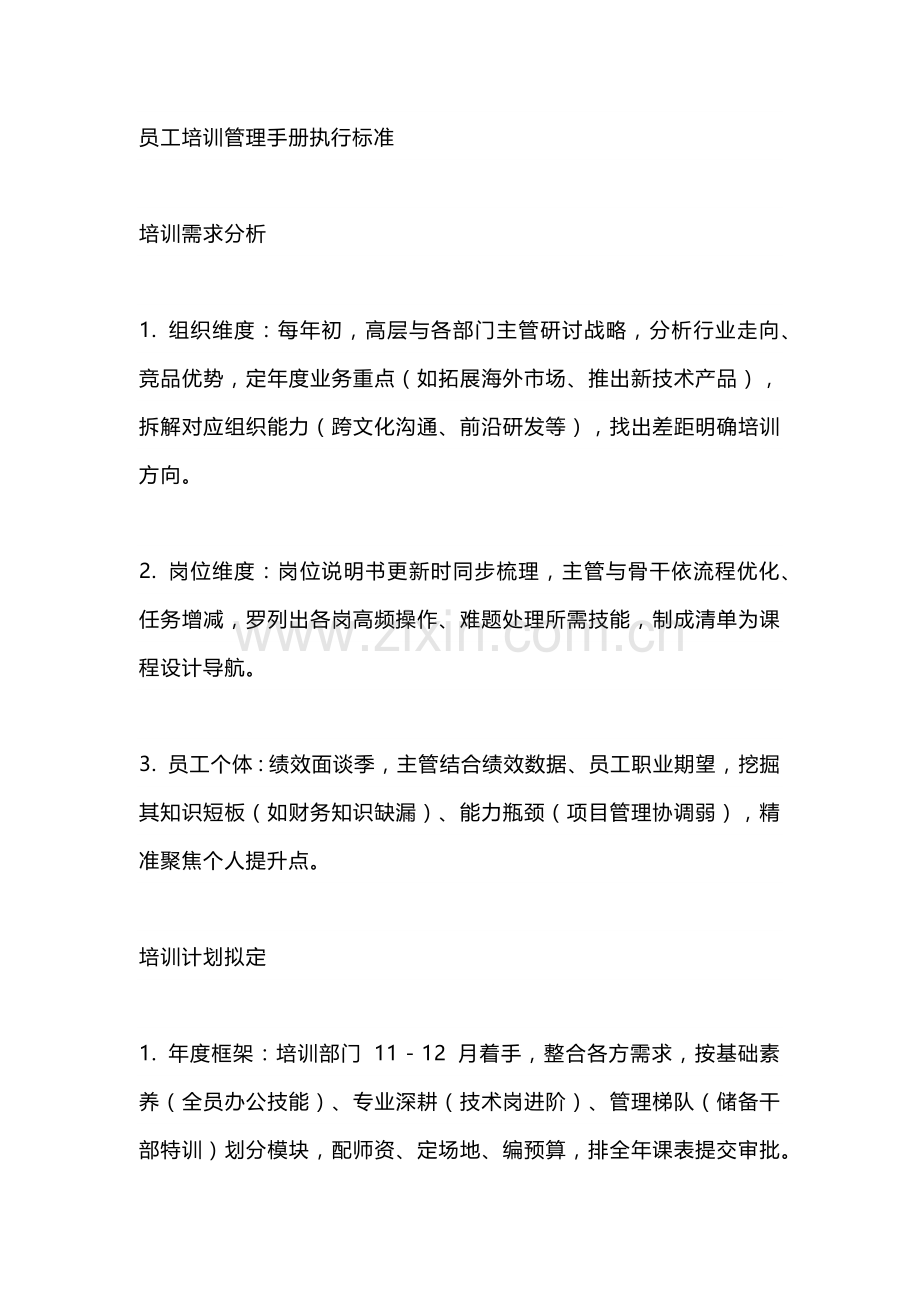 员工培训管理手册执行标准