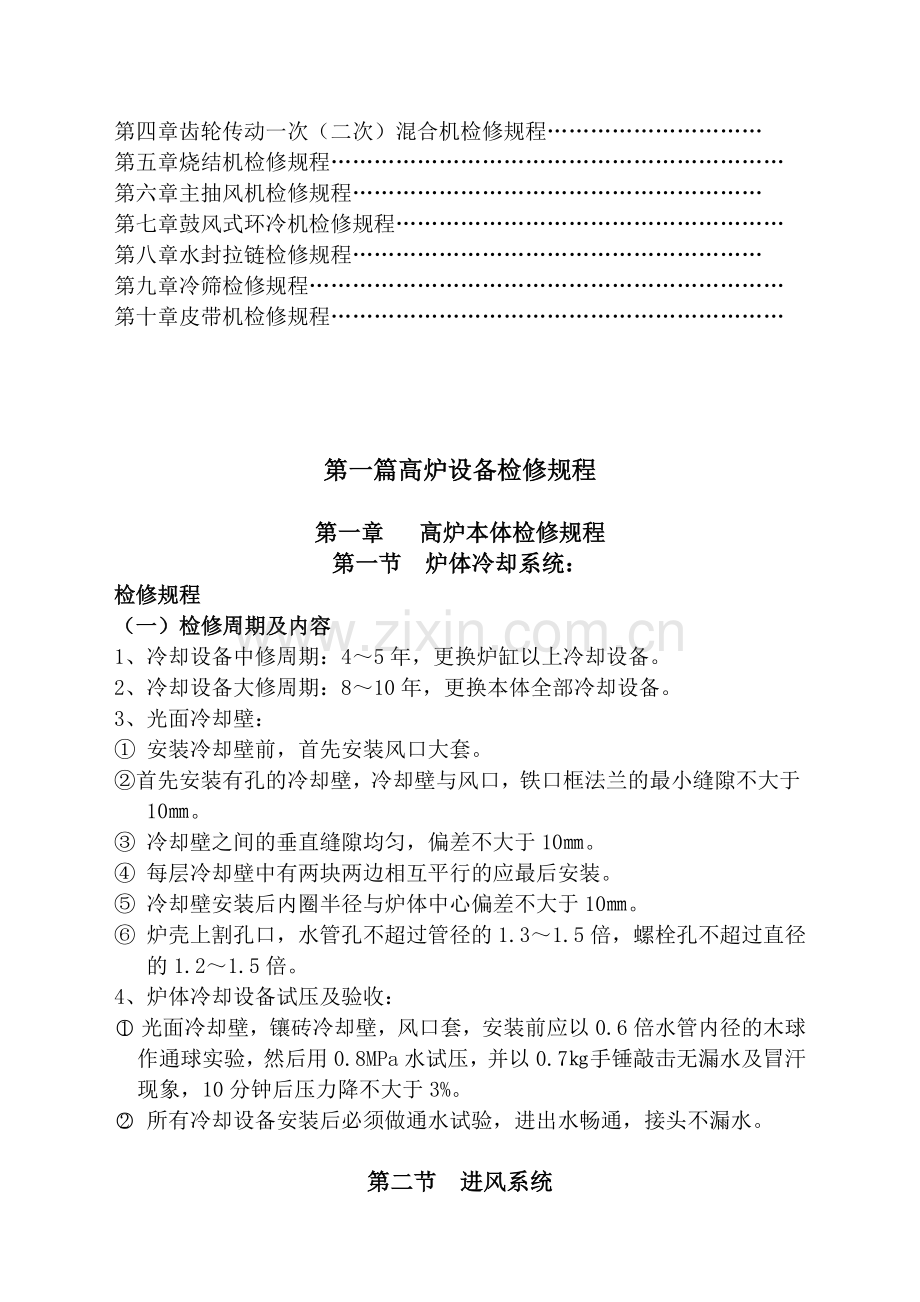 1、冷却设备中修周期:4~5年,更换炉缸以上冷却设备。