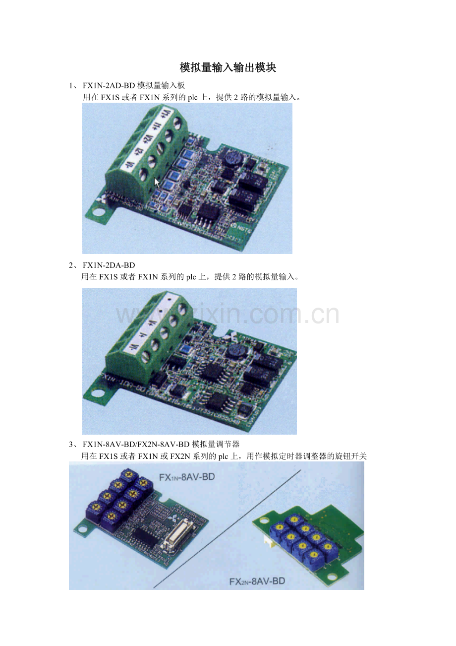 用在FX1S或者FX1N系列的plc上,提供2路的模拟量输入。