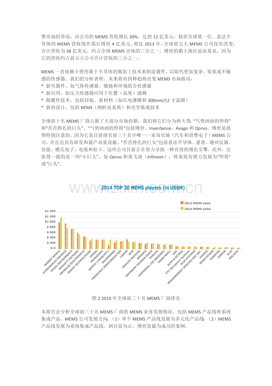 图2 2014年全球前三十名MEMS厂商排名