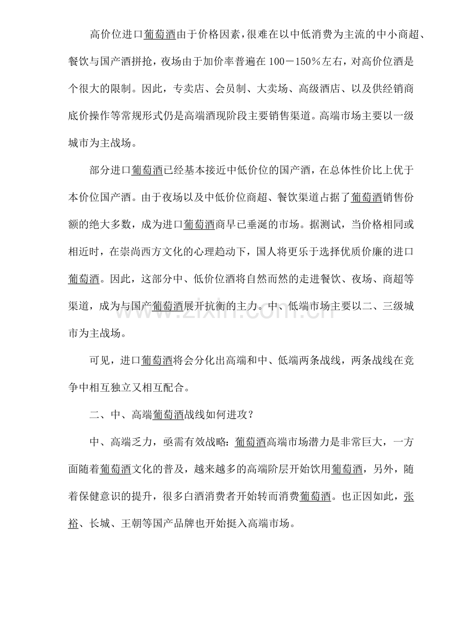 可见,进口葡萄酒将会分化出高端和中、低端两条战线,两条战线在竞争中相互独立又相互配合。