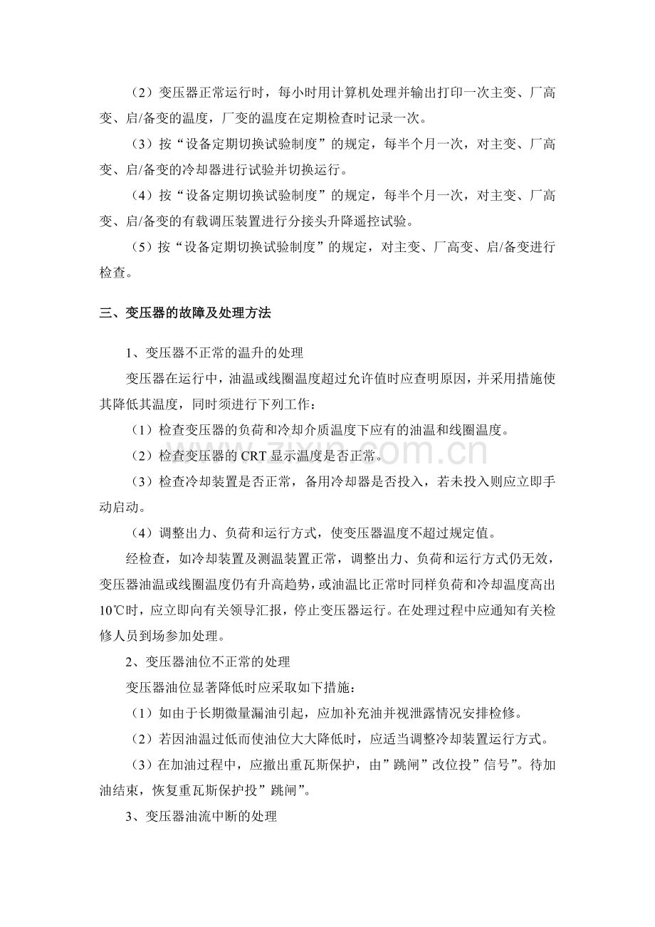 (4)调整出力、负荷和运行方式,使变压器温度不超过规定值。