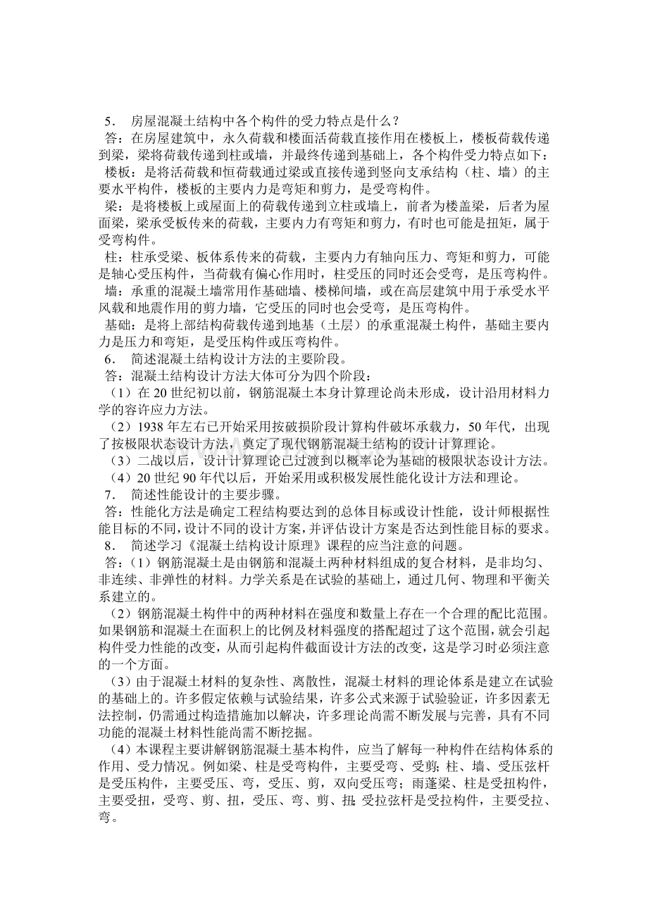 5. 房屋混凝土结构中各个构件的受力特点是什么?