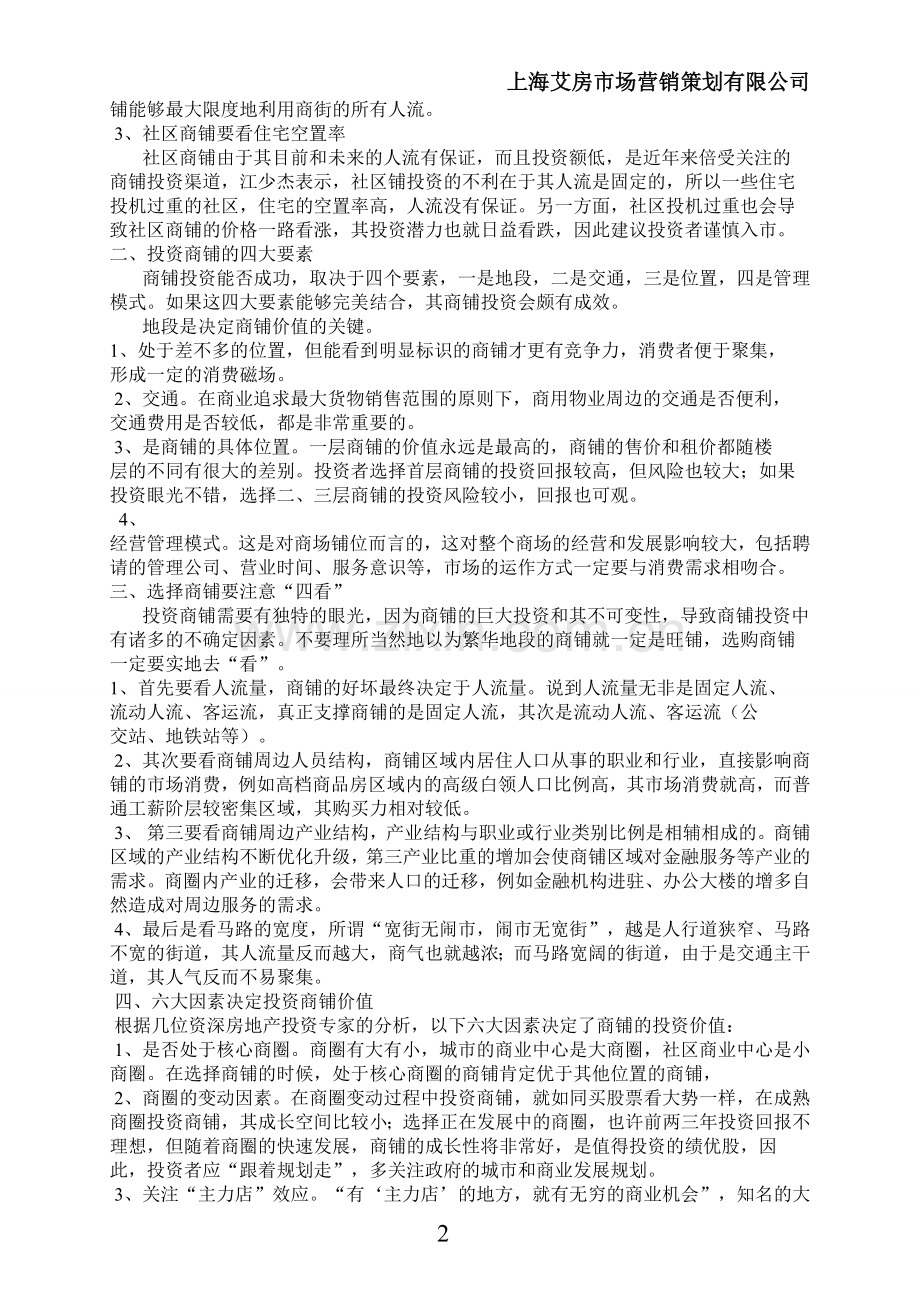 根据几位资深房地产投资专家的分析,以下六大因素决定了商铺的投资价值: