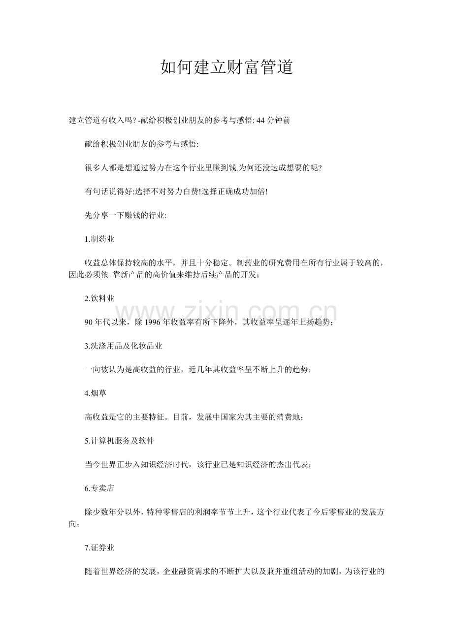 以上我所说的行业可想而知一般人是很难在这些行业占上边的.因投资大.经验要强.主要还是管理非常难做的.所以先不选择这快.(以上的是要了解到的这对做建立管道收入时应用交流的上.了解社会现实)