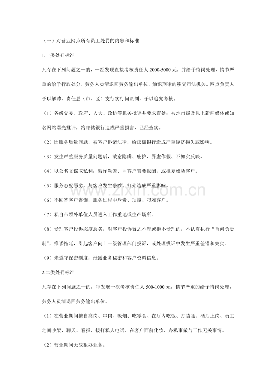(一)对营业网点所有员工处罚的内容和标准