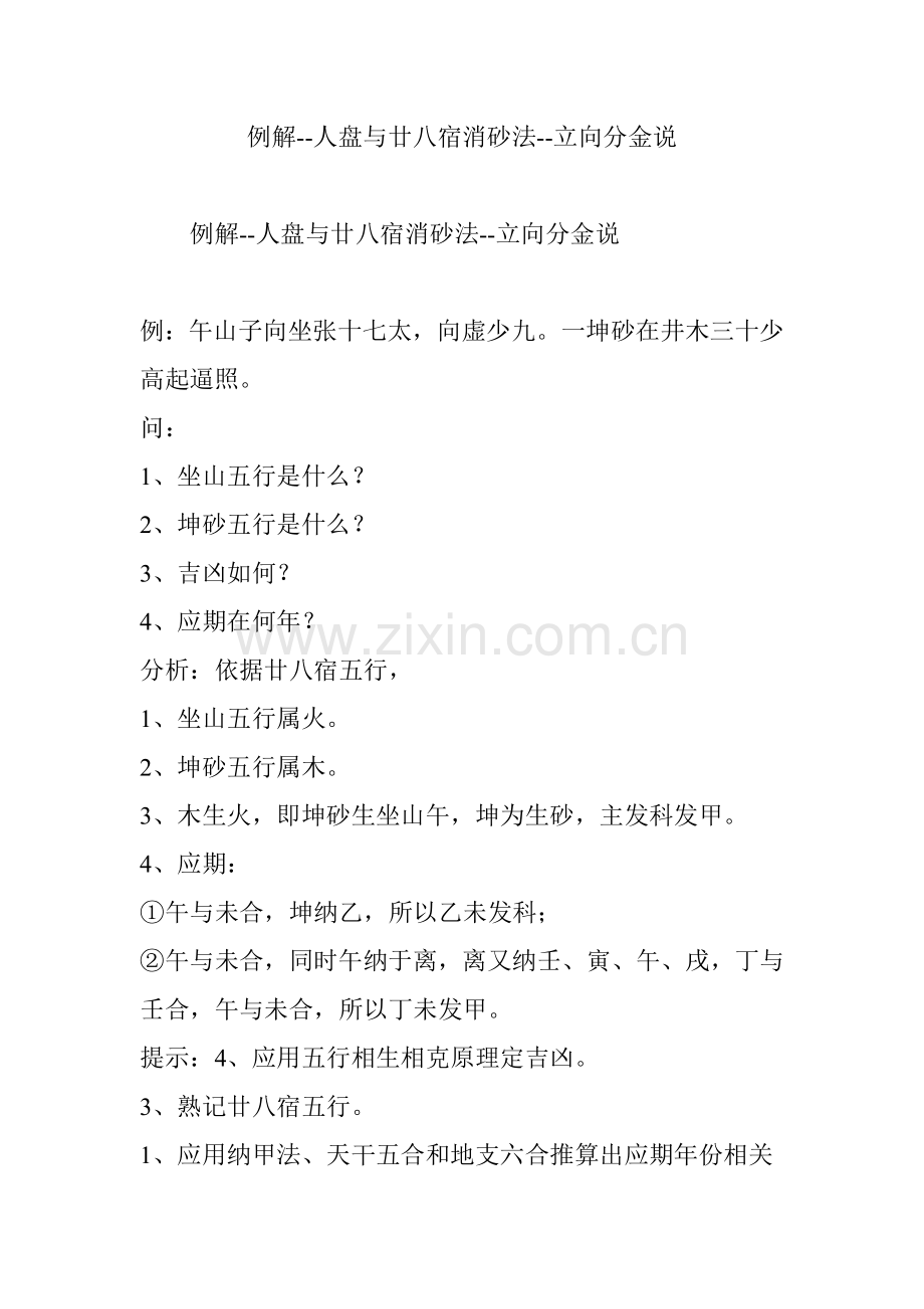 例:午山子向坐张十七太,向虚少九。一坤砂在井木三十少高起逼照。