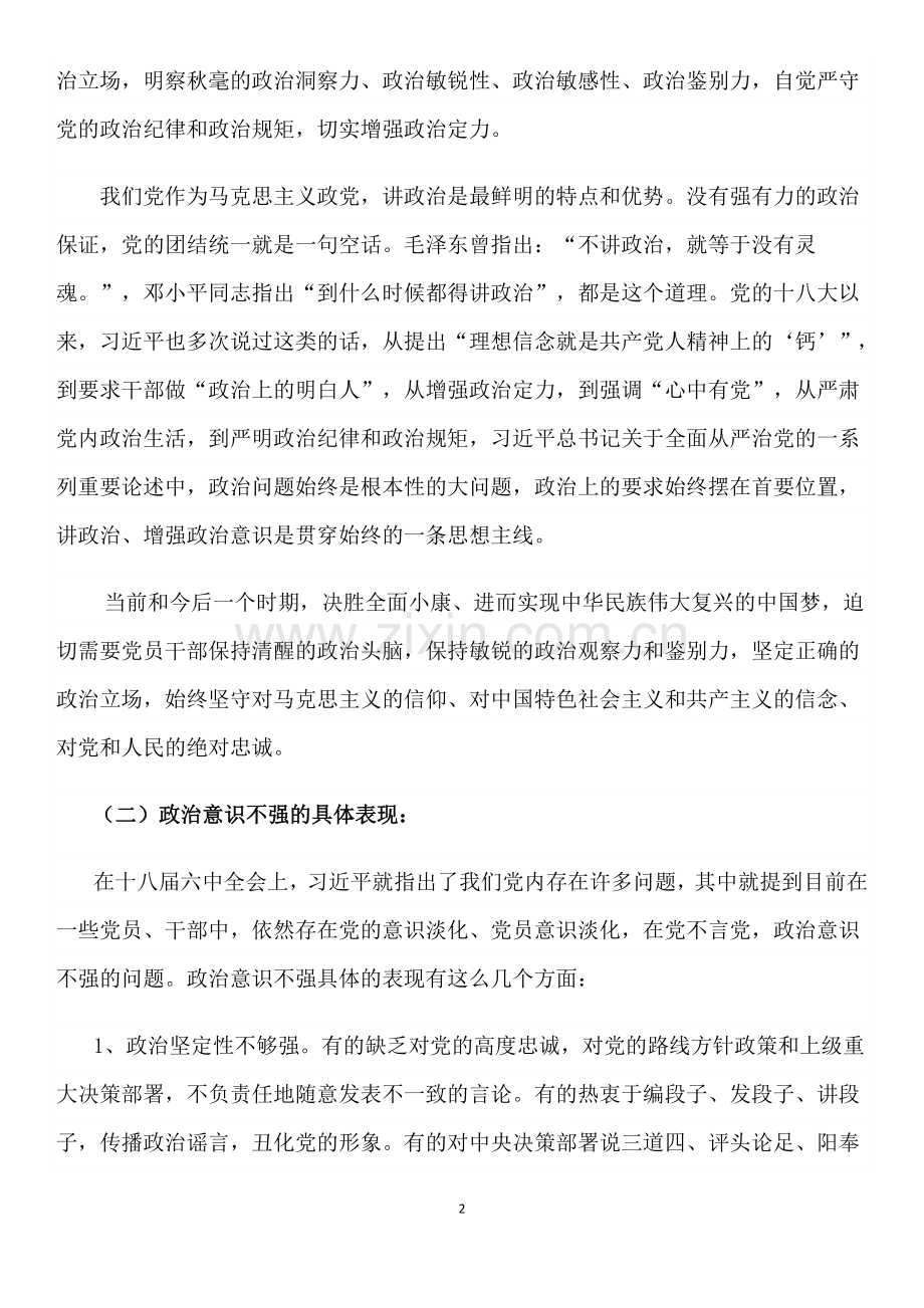 第二,增强政治意识就是把握正确的政治方向,增强每个党员的政治敏感性和政治鉴别力。