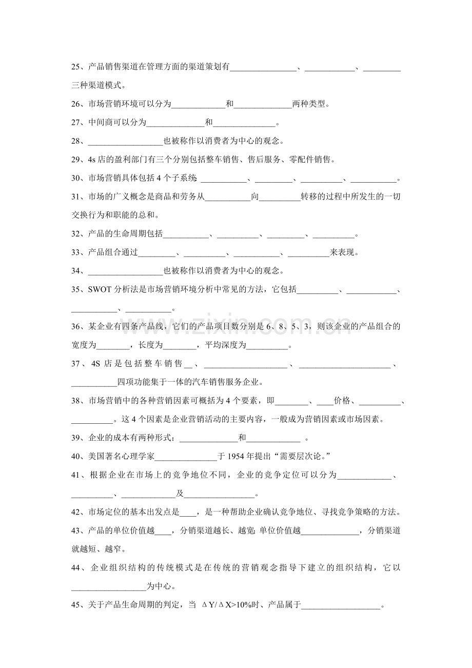 4S店主营业务与市场营销-试题库