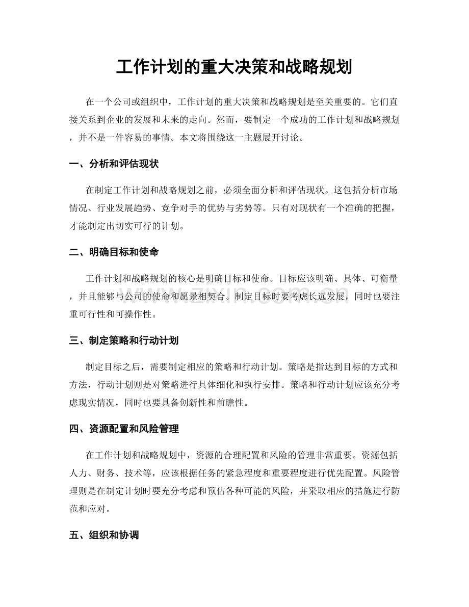 在一个公司或组织中,工作计划的重大决策和战略规划是至关重要的。它们直接关系到企业的发展和未来的走向。然而,要制定一个成功的工作计划和战略规划,并不是一件容易的事情。本文将围绕这一主题展开讨论。