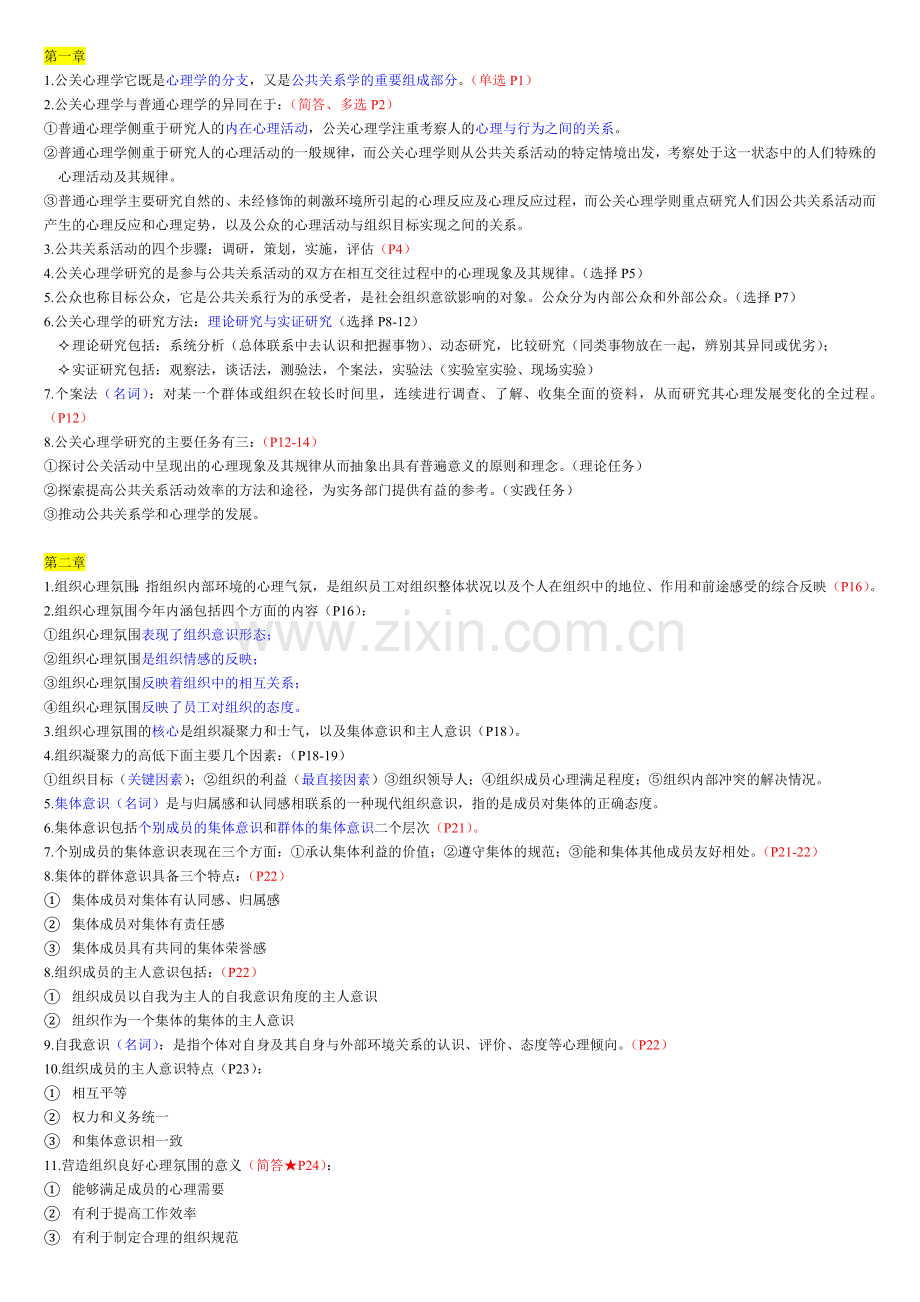 5.影响公众心理的因素:公众自身因素,社会环境因素,组织行为因素(P33-35)