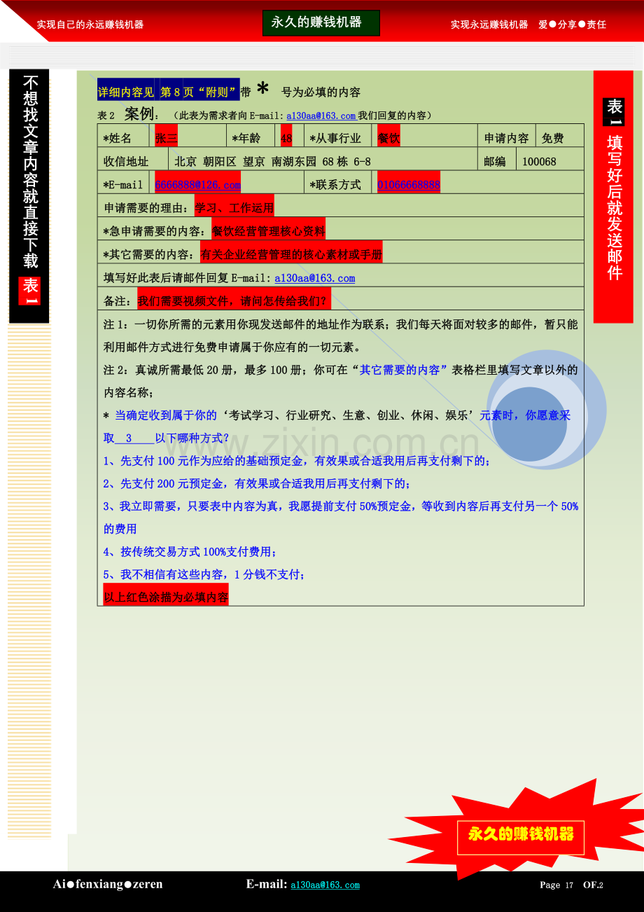 你只需认真填写 内容(按表2案例填写),填写好后用邮件发送给我们,我们就会将以表3案例类似的内容发送到你的邮件里: