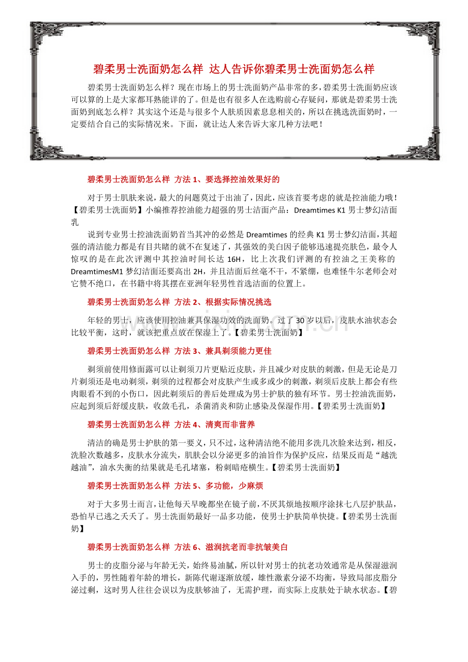 对于大多男士而言,让他每天早晚都坐在镜子前,不厌其烦地按顺序涂抹七八层护肤品,恐怕早已逃之夭夭了。男士洗面奶最好一品多功能,使男士护肤简单快捷。【碧柔男士洗面奶】