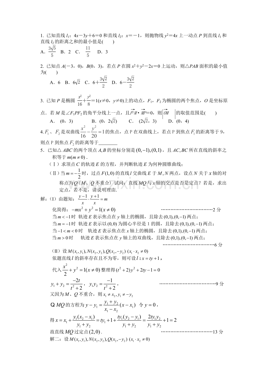 当时 轨迹表示以为圆心半径是1的圆,且除去两点;