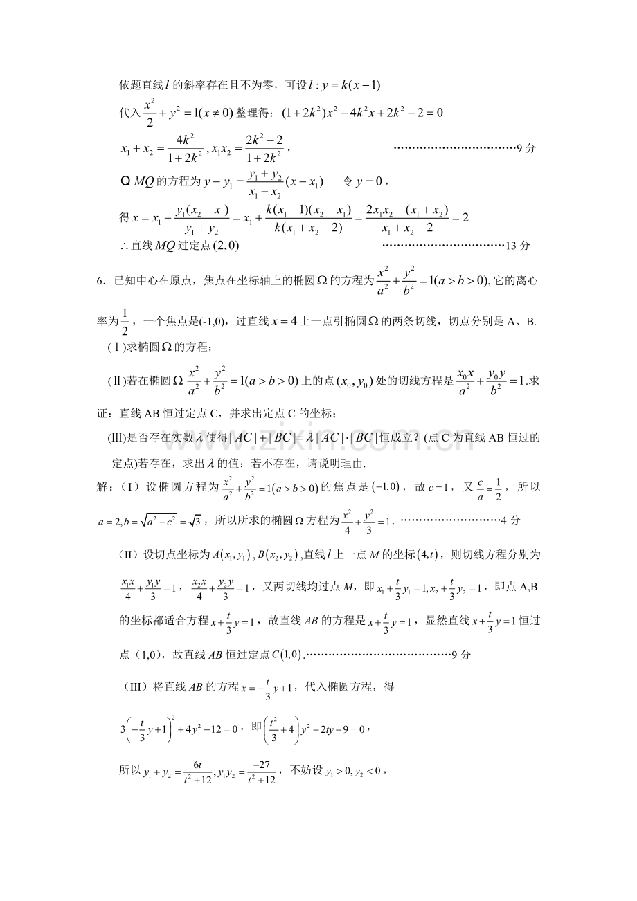 6.已知中心在原点,焦点在坐标轴上的椭圆的方程为它的离心率为,一个焦点是(-1,0),过直线上一点引椭圆的两条切线,切点分别是A、B.