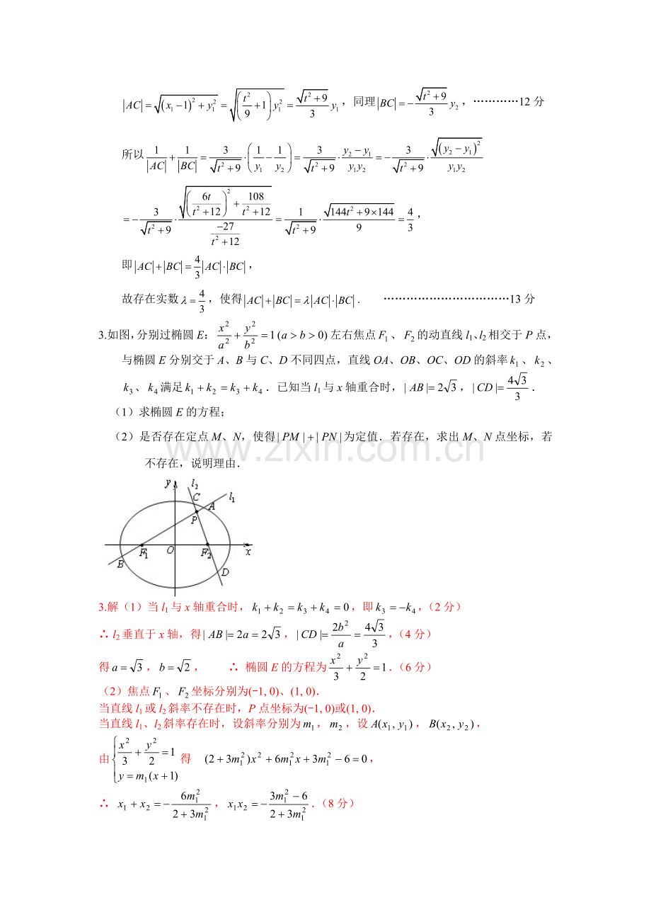 3.解(1)当l1与x轴重合时,,即,(2分)